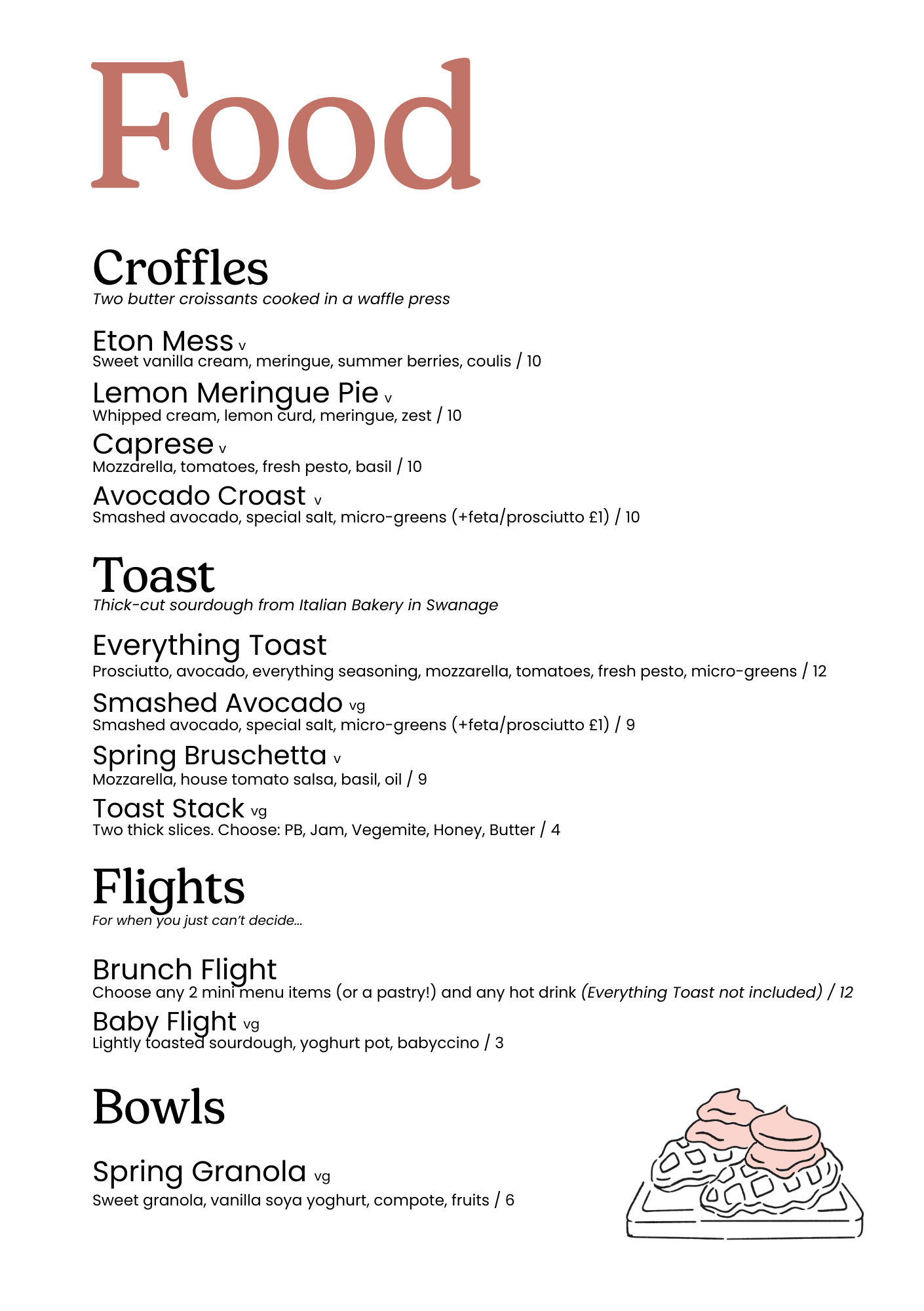 Our brunch & lunch menu is served daily in our Southbourne store, with the menu changing every 6-8 weeks. You’ll find our latest menu below, and don’t hesitate to email if you have questions about allergens or would like to book a table! We don’t currently serve brunch in our Westbourne store - just a lovely selection of pastries & cakes.